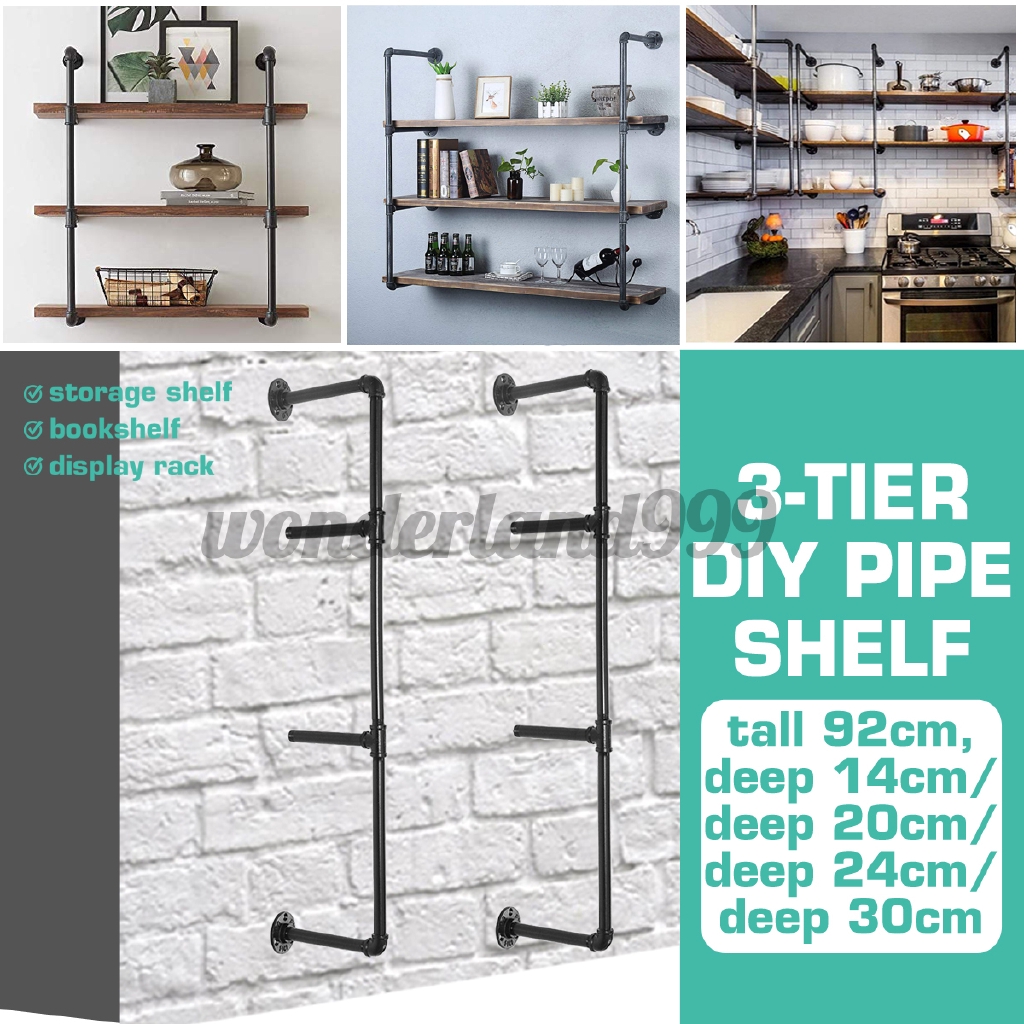 3 Tiers Industrial Pipe Shelving Bookshelf Rustic Modern Wood