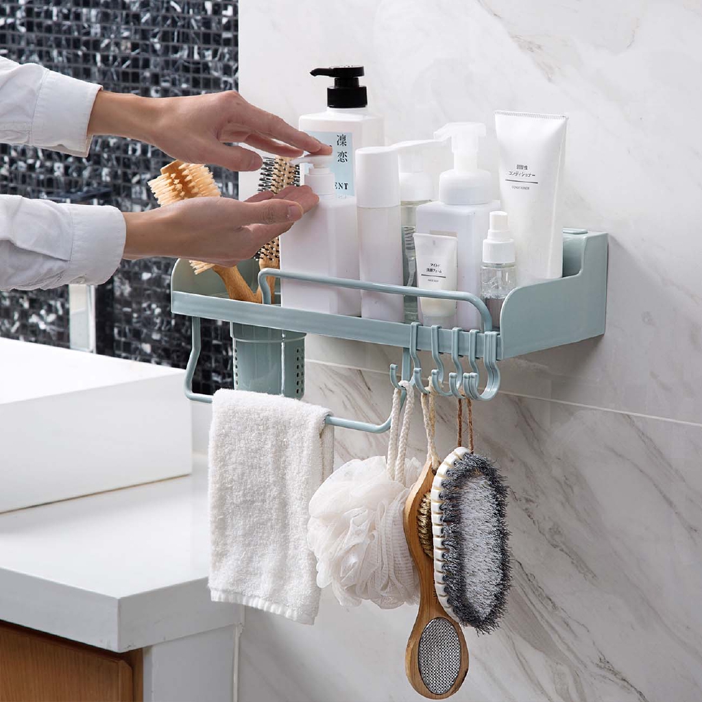 Jual New Item Wall Mounted Movable Hooks Rack Shelf Bathroom