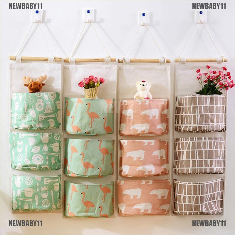 Newbaby11 Hanging Storage Bag 3 Pockets Wall Mounted Wall Pouch