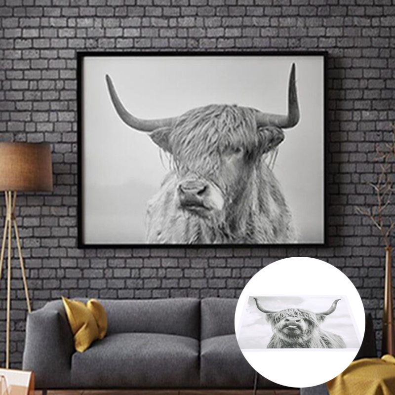 Black White Poster Animal Prints Highland Cow Wall Art Painting