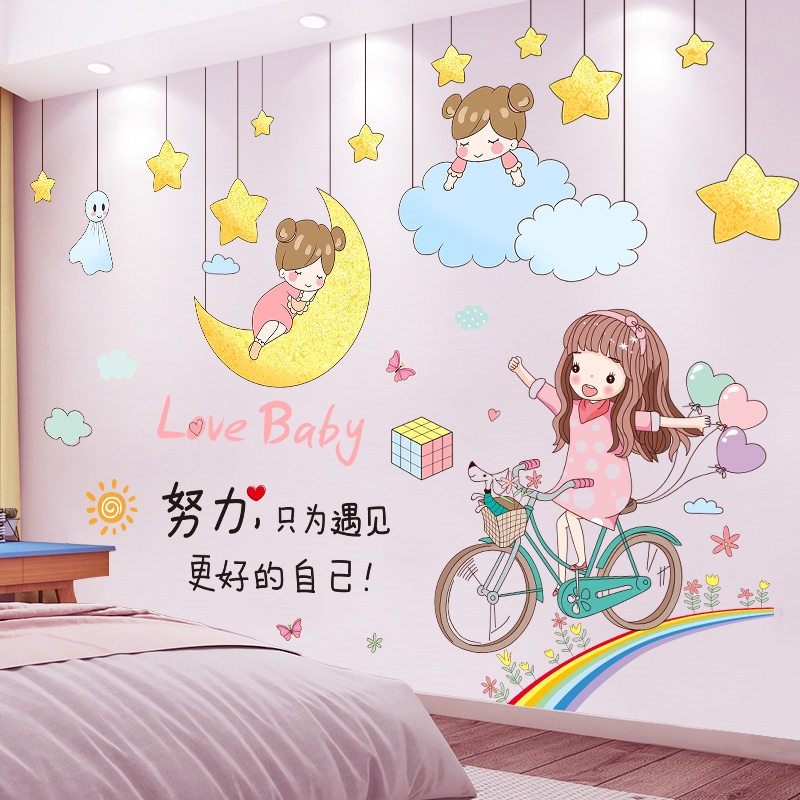 Ready Stock 3d Girl Wall Stickers Warm Bedroom Wall Decoration